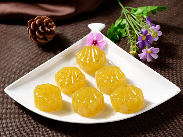 组织滋润松软,细腻化渣,不翻粗,无糖子。口味香甜可口,具有浓郁的桂花清香。